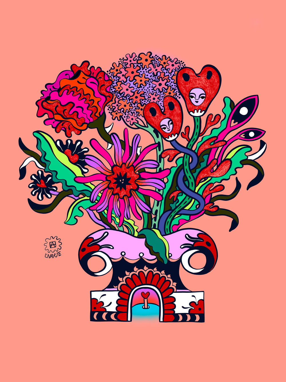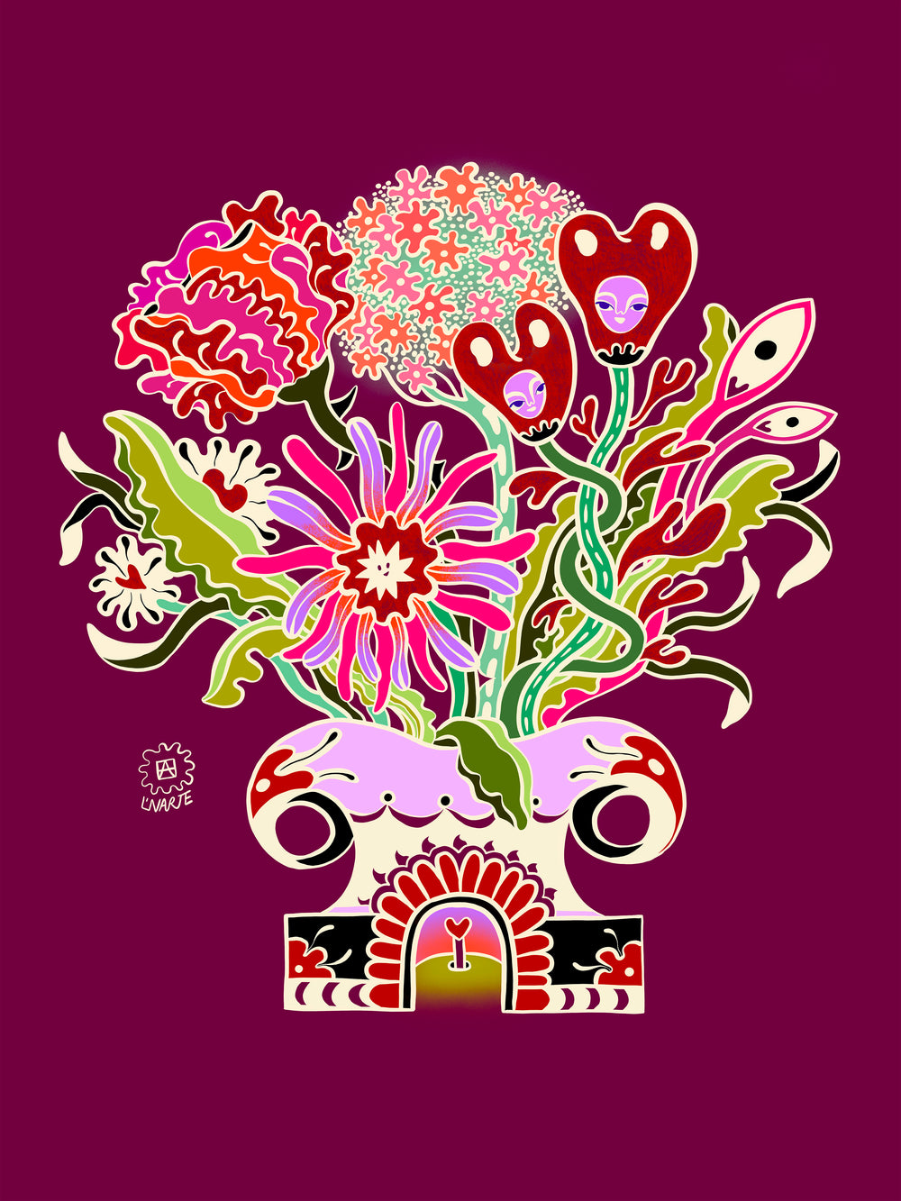 Konstbuketten is a series of prints sold in flower shops around Stockholm. The motifs are made by Amandah L'Narte and new motifs are released every 2 weeks.